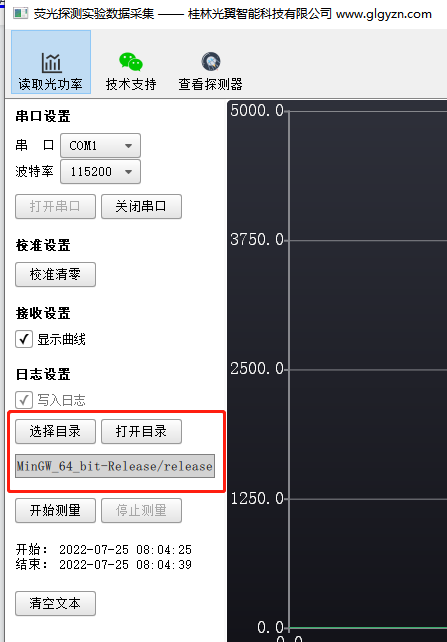 “選擇目錄”按鈕我們可以配置熒光實(shí)驗(yàn)的數(shù)據(jù)保存目錄,“打開(kāi)目錄”我們可以打開(kāi)對(duì)應(yīng)的目錄,找到熒光實(shí)驗(yàn)的數(shù)據(jù)集。